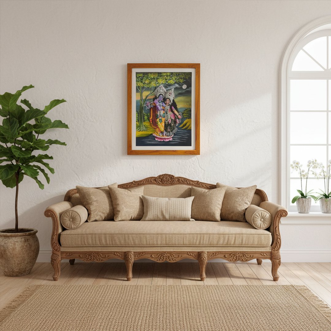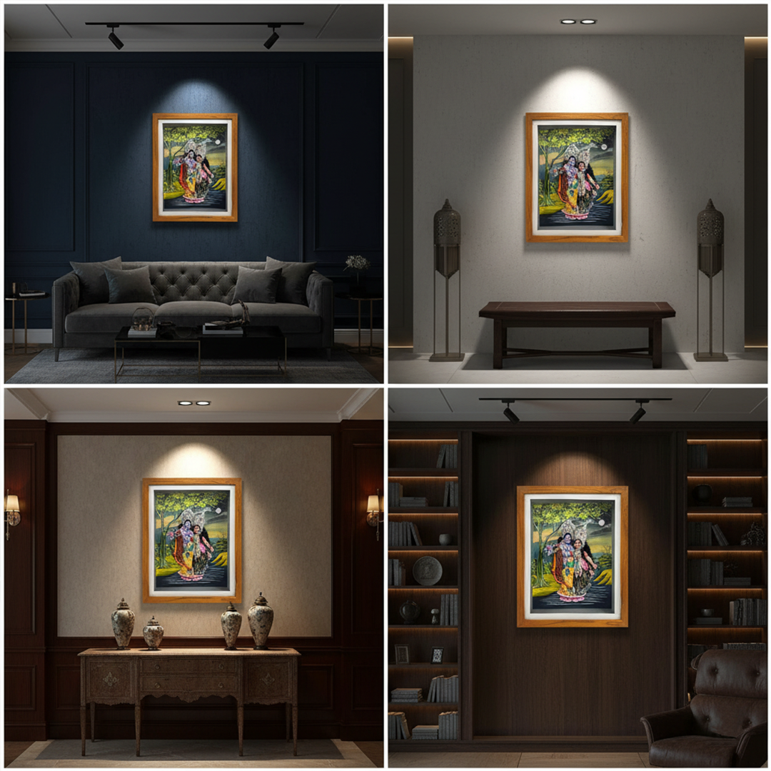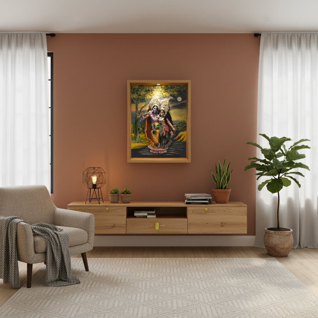 Depicts the eternal bond of Radha and Krishna, symbolizing love, positivity, and spiritual harmony.