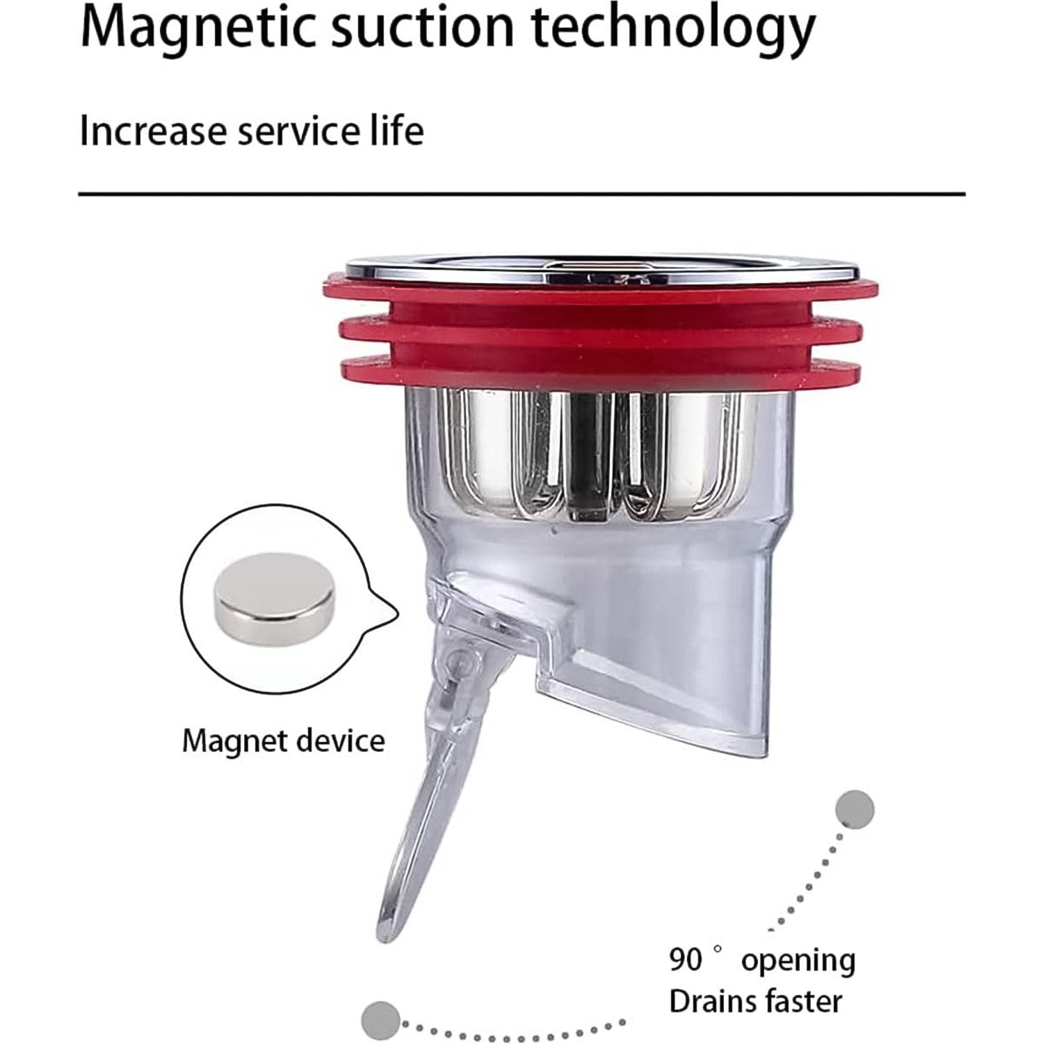 - Magnetic Adsorption:- Adopting the principle of magnetic adsorption for odour prevention, the valve is tightly closed when not draining to prevent backflow and odour. When draining, the valve is opened to discharge a large amount of water.