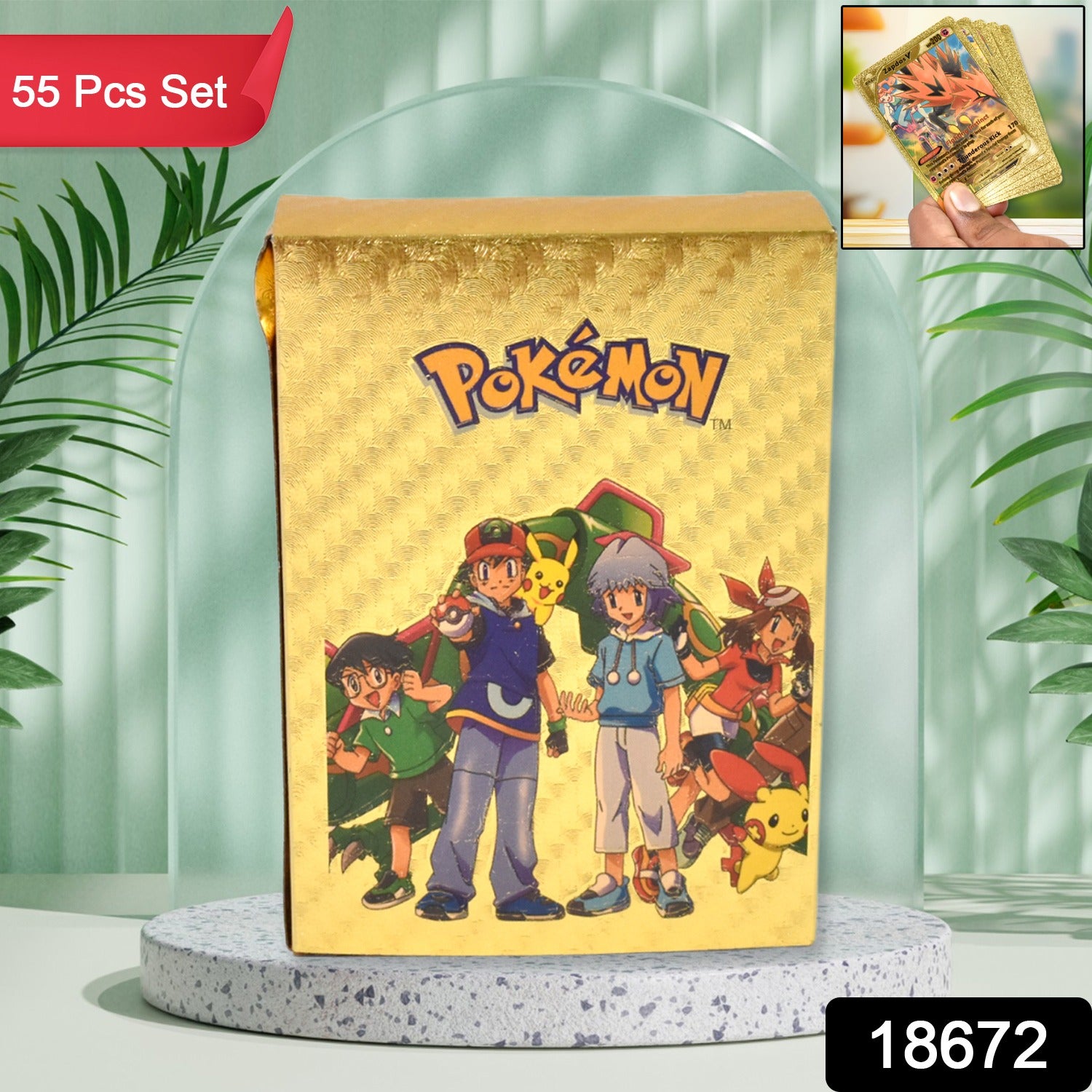 Pocket Monster Golden Trading Playing Cards Premium Quality Playing Cards Foil Card Assorted Card, These cards can make your kids play all the time (55 Pcs Set)