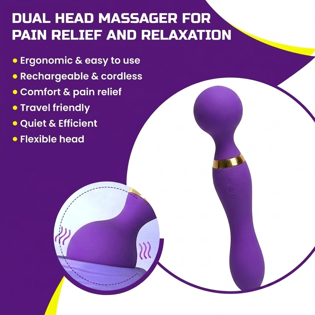 A powerful handheld dual-head massager designed to relax muscles, improve blood circulation, and relieve pain in the neck, shoulders, back, arms, legs, and feet.