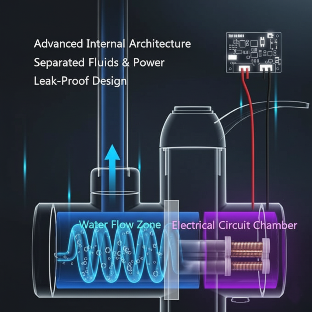 The streamlined design seamlessly integrates into contemporary kitchen and bathroom aesthetics without occupying valuable counter space. Dual functionality—hot and cold water regulation—eliminates the need for multiple fixtures, creating a minimalist approach to water heating.